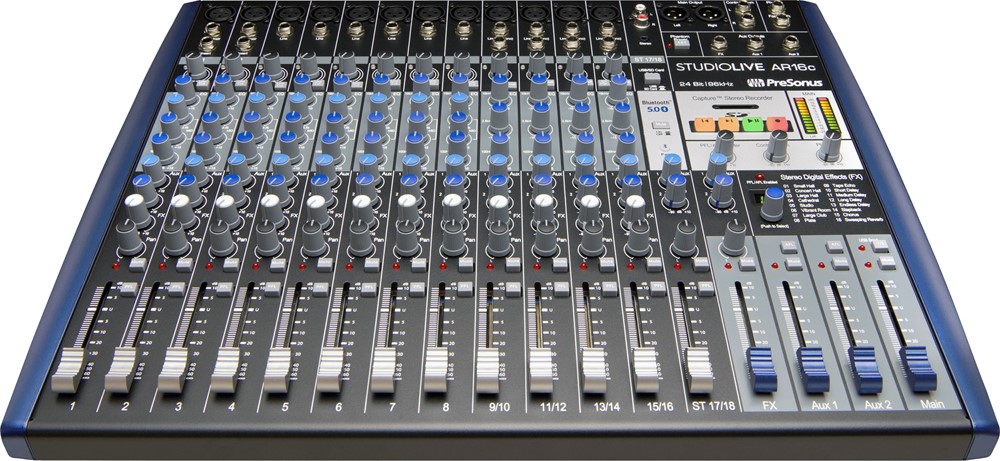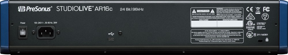 StudioLive AR16c er en hybridmikser som kombinerer en 18-kanals analog mixer med ett 18x4 USB-C-lydkort (24-bit/96 kHz) og en stereo-opptaker via SD-kort. Den er utrustet med 12 XMAX-mikrofonf-preamper, to instrumentinnganger, 16 linjeinnganger og en stereo Super Channel med Bluetooth, RCA- og 3,5 mm-innganger. 3-bånds Equalizer pr.kanal. Mixeren har innebygget effektprocessor med 16 presets og dedikert send/return-loop. For innspilling inngår Capture-programvare og en lisens for Studio One Pro.